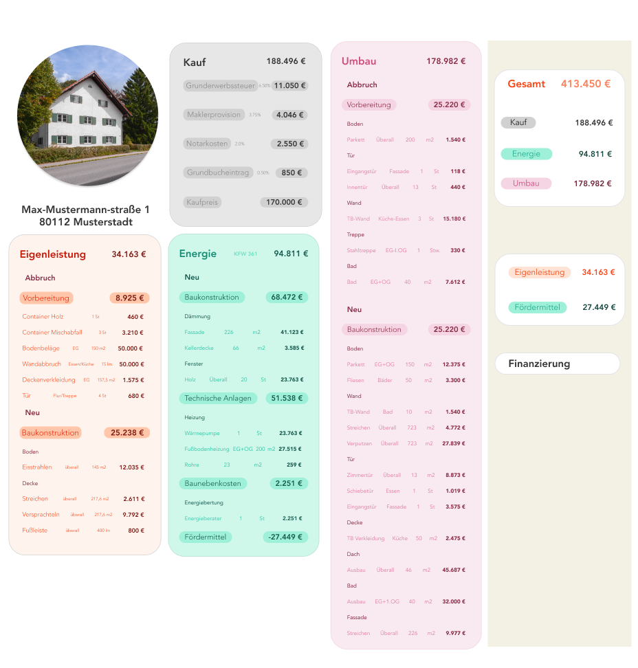 Gemeinsam mit deiner Architektin oder deinem Architekten erstellen wir eine detaillierte Kostenübersicht für deinen Umbau.